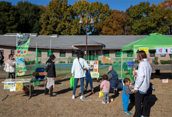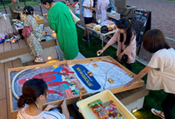 施設の前に広がる広場でも、アウトドアフェスタや打ち水大作戦、縁日、ナイトピクニックなど、季節に合わせた催しを、地域の方の協力を得ながら開催しています。