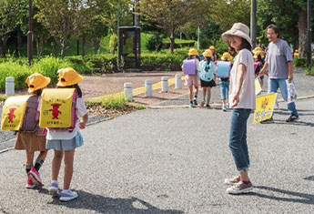 各種イベントを企畫したり、日々の暮らしでは、登下校中に車との接觸の危険性のある場所に、みらいサポーターが立ち、子どもたちと「おかえりー!」「こんにちはー!ただいまー!」と元気に聲を掛けあいながら、子どもたちの安全を見守っています。