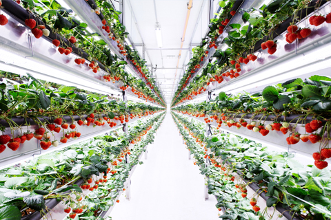 アメリカはニュージャージー州の2萬㎡にも及ぶ巨大な建物の中で、日本のイチゴが輝きを放っています。この植物工場で収穫されたイチゴは、水と電気さえあれば、雪深い北國でも、灼熱の砂漠でも、あるいは宇宙船の中でさえ、同じ甘さと香りで生産できる可能性を秘めています。