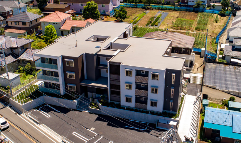 駅から近く、交通量も多い高臺に老朽化した賃貸住宅をお持ちだったAさま。地域のランドマークになるような場所だからこそ、外観のデザインにこだわった、質の高い賃貸住宅への建て替えを希望されていました。また、「地域やご入居者に末永く愛される場所にしたい」という想いもお持ちでした。