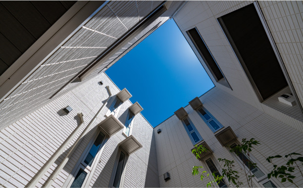 中庭から切り取られた青空。日々の暮らしに心地よい開放感を與えてくれます。