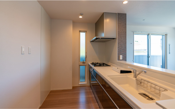 家族でおうち時間を楽しめるように、すべての住戸にワイドなキッチンを採用しました。