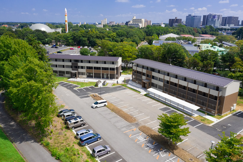 広大なキャンパスの國立大學(xué)法人筑波大學(xué)。今回ご紹介する事例は、その春日エリアに誕生した筑波大學(xué)グローバルゲストハウスです。國內(nèi)外から招聘する研究者や客員教授などの滯在施設(shè)が不足していることから、ゲストハウスの公募プロポーザルが実施され、選考の結(jié)果、大和ハウス工業(yè)を代表企業(yè)とする大和ハウスグループが選ばれました。