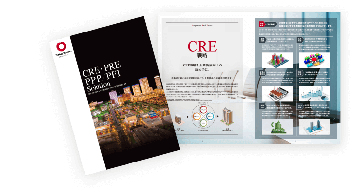 CRE(Corporate Real Estate)とは、事務所や店舗、工場、福利厚生施設など、企業が所有するあらゆる不動産を指します。大和ハウスのCRE戦略では、これらの不動産を経営資源として捉えたうえで、企業価値向上を目的とした不動産活用を行います。