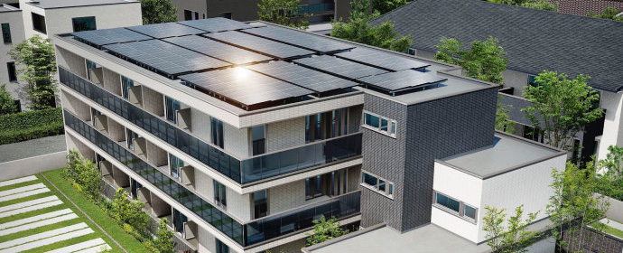 ZEH-Mは、斷熱性能の大幅な向上と省エネ?創エネの組み合わせにより、建物全體で「使う」エネルギーと「創る」エネルギーの収支ゼロを目指す集合住宅。