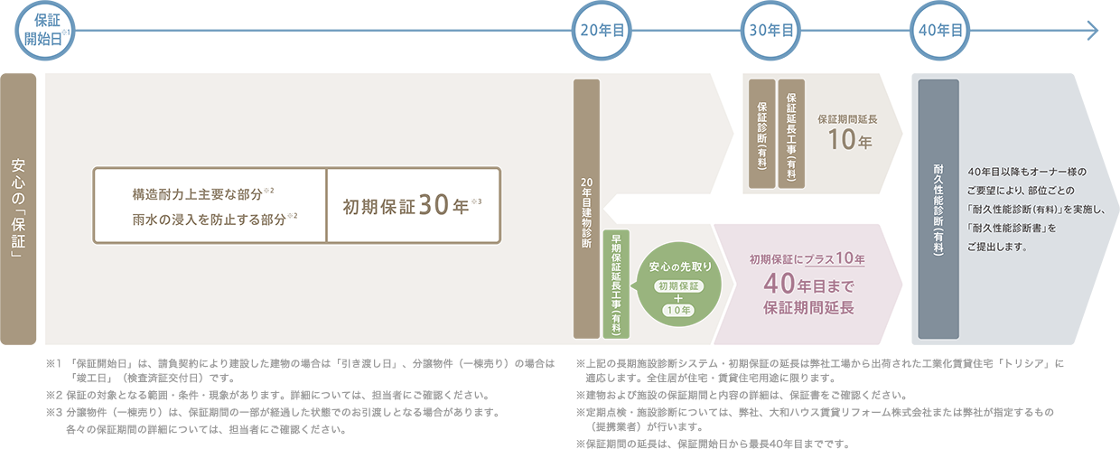 業界でもトップクラスの初期保証30年。オーナー様の大切な資産を末永く守りつづけます。