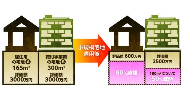 - ?「一定割合の減額」とは:貸付事業用宅地の減額割合は50%です。
