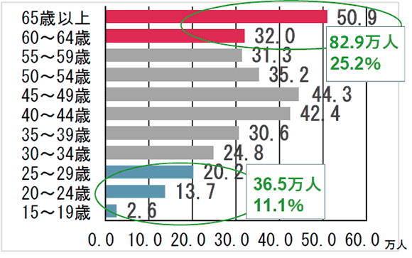 図1:(年齢階層)年齢階層別の建設技能労働者數