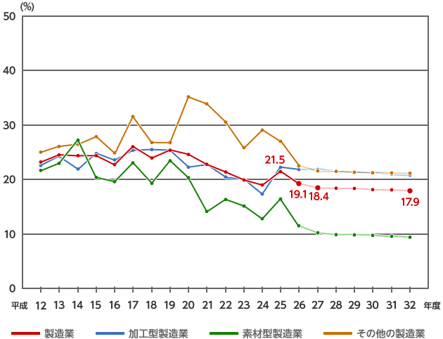 2. 注2)平成27年度は実績見込み、32年度は見通しを表し、それ以外の年度は、翌年度調査における前年度の実績を表す(例えば、平成26年度の値は、平成27年度調査における「平成26年度実績」の値)。