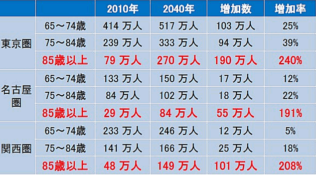 図1:大都市における高齢者人口の推移(2010年?2040年)