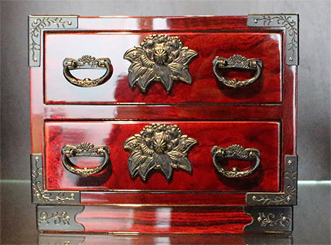 仙臺簞笥は、巖手県の巖谷堂簞笥や大阪泉州桐簞笥と並び稱される、日本の代表的な和簞笥の一つです。仙臺簞笥は、江戸時代末期に仙臺藩の地場産業(yè)として生まれ、武士たちが好んで愛用したといわれています。その特徴は、指物?塗(漆「木地呂塗り」)?飾り金具の「三技一體」による堅(jiān)牢な美しさにあり、大変重厚な作りであるため耐久性に優(yōu)れていることから、仙臺地域では親から子へ代々使い続ける簞笥として珍重されてきました。