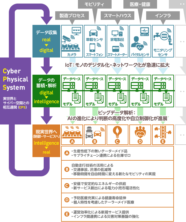 >実世界とサイバー空間との相互連関(Cyber Physical System)が、社會(huì)のあらゆる領(lǐng)域に実裝され、大きな社會(huì)的価値を生み出していく社會(huì)