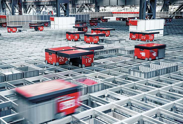 さらに、2016年3月には、積み木型ロボットの「オートストア」を東扇島の通販配送センターで稼働させている(図-3)。「オートストア」は従來の自動倉庫と比べて高密度での保管を実現出來ること、入荷出荷の優先をコントロールする必要がないこと、出荷頻度の高い商品、低い商品の棚の入換え(ロケーション移動)を別プロセスで実施する必要がないことなどメリットが多くあり、従來の作業方法に比べて3から4倍の効率アップがなされている。