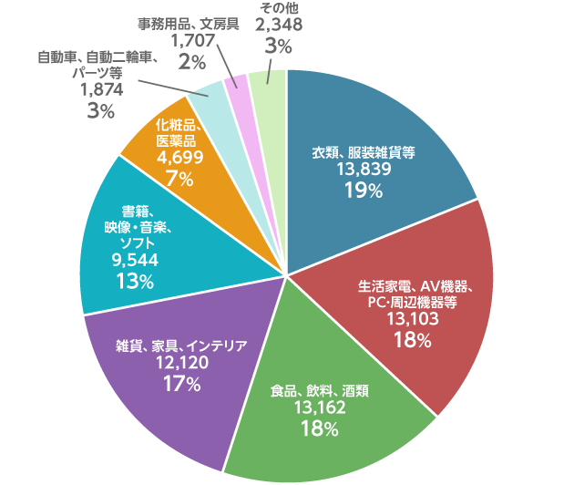 物販系分野內での各カテゴリーの構成比率(単位:億円)(%は構成比率)