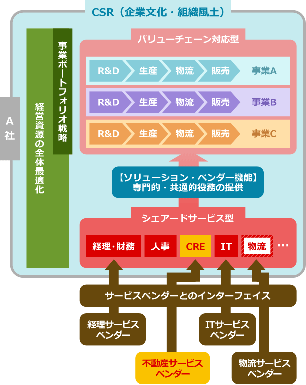 その通りです。CRE戦略は、企業の本業に関わる一連の業務工程である「バリューチェーン」を支える「シェアードサービス」であると認識することが非常に重要です。