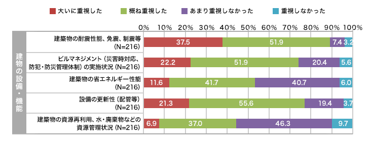こうしたニーズは、投資家においても同様で、平成30年6月に、國土交通省から発表された「不動産市場に関する國內投資家調査結果」を見ても、ビルマネジメントや資源の活用、省エネルギー性能を重視する聲は少なくありません。