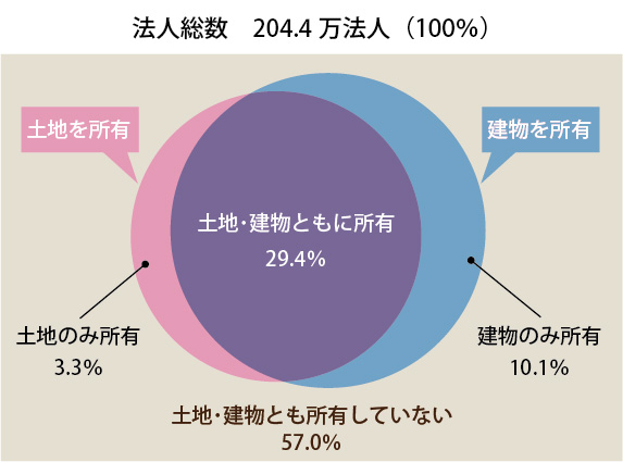 國土交通省の「法人土地?建物基本調査」(平成25年)によると、平成25年1月1日現在?土地を所有している法人は67萬法人、建物を所有する法人は80萬9千法人となっており、土地の所有よりも建物を所有している法人數の方が約20%多くなっています。