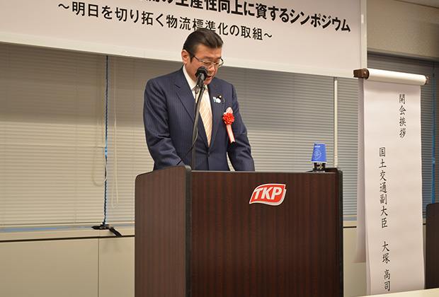まず、大塚高司 國(guó)土交通副大臣による開會(huì)ご挨拶のあと、矢野裕児流通経済大學(xué)教授による「企業(yè)連攜による生産性向上に向けた取組」と題した基調(diào)講演が行われました。