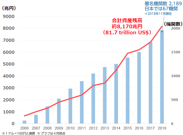 図:PRI署名機関數?合計資産殘高