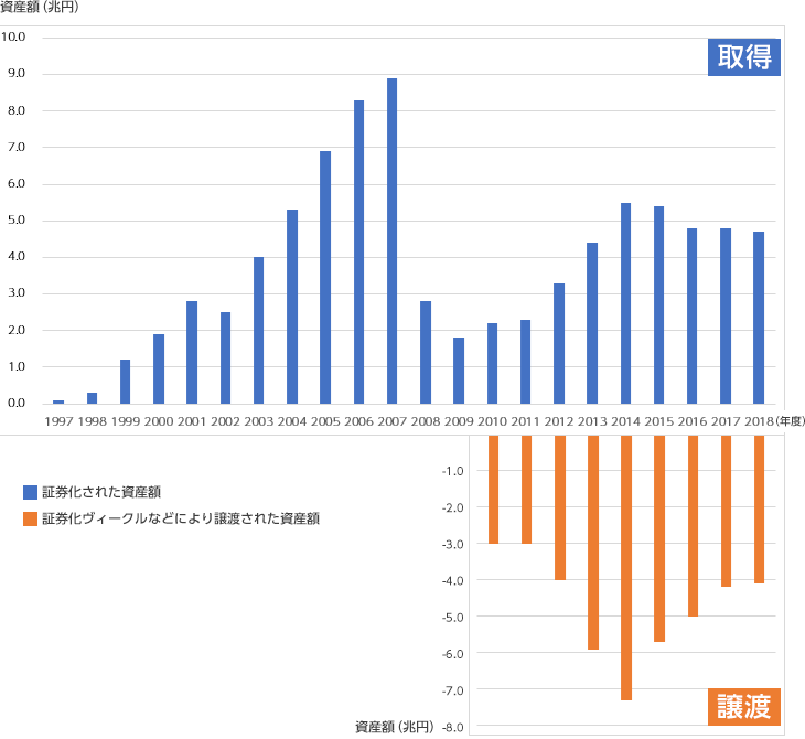 図1:証券化の対象不動(dòng)産の取得?譲渡実績(jī)の推移