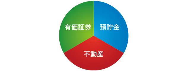 昔からある資産形成の考え方に「財産三分法」があります。一般的には、資産を預貯金、不動産、有価証券に分けて保有すべきという考え方です。預貯金を除いた運用資産として考える場合には、不動産、債券、株式をさす場合もあります。