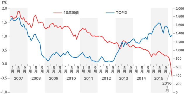 貸出金利:日本銀行HP、TOPIX:東京証券取引所HPより作成