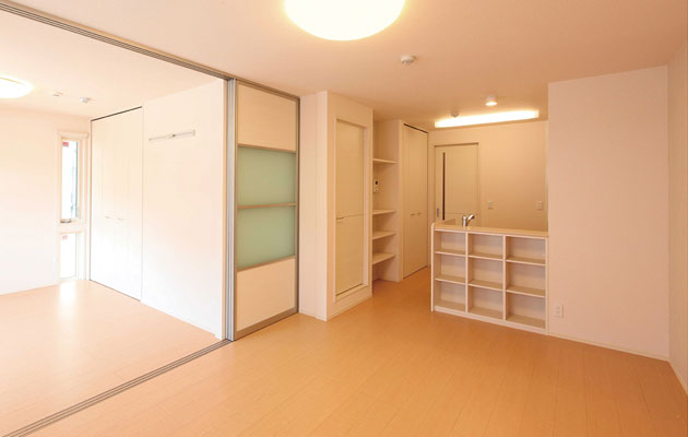 今回建設(shè)した建物の大きな特徴は、自由なテナント設(shè)計(jì)と賃貸住宅の融合をコンセプトとした商品『アバンウェル ディッツォ ‐ HV』による提案だったということ。さらに、入居ターゲットが単身層であることから、花粉や塵などを吹き飛ばすエアシャワールームに、不審者から一時(shí)的に身を守り、警備會(huì)社に連絡(luò)することができる「セーフティアゲインルーム」を備えたことでした。
