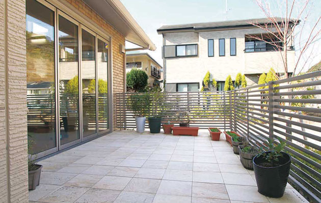 待合スペースの掃き出し窓の外に設(shè)けたオープンデッキ