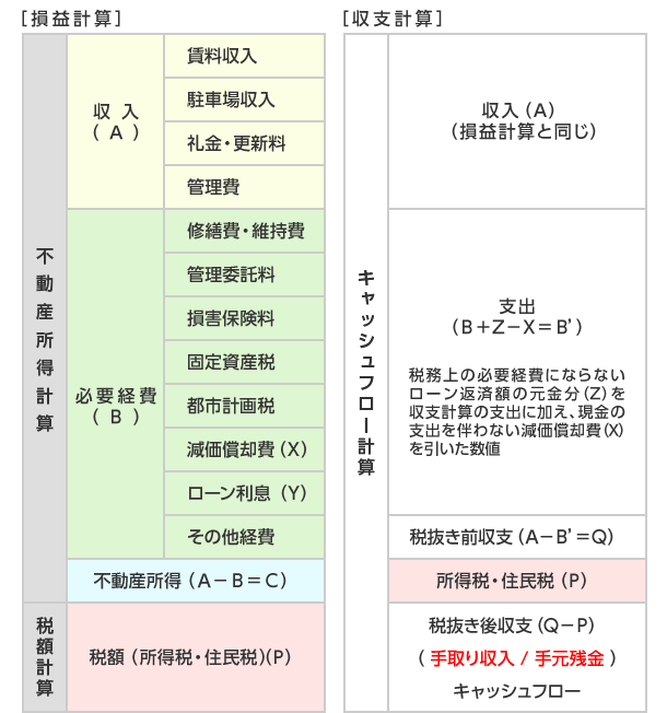 次に、契約によって異なるが敷金?禮金?保証金(これらの形態は地域により異なる)、あるいは更新料など、返還義務のないものが収入としてあげられる。その他、駐車場代、駐輪場代をはじめ、太陽光発電からの収入も計上できる。
