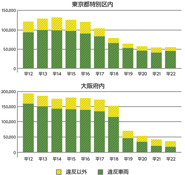 出典:東京都特別區(qū)及び大阪府における瞬間路上駐車臺(tái)數(shù)の推移(平成12年~22年)