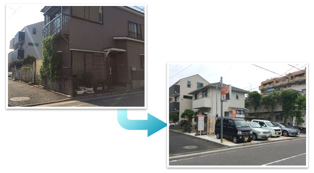 次は、土地オーナー様がお住まいになられていた戸建住宅を取り壊し、コインパーキングを造成した事例です。