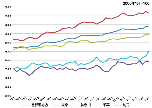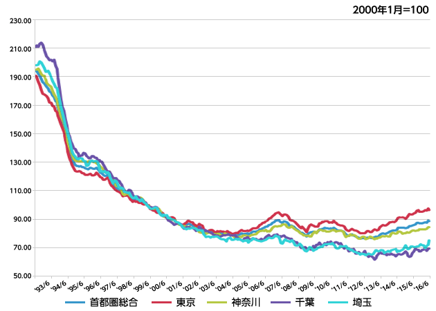 2016年の不動産市況は、2015年後半に失速しかけた市況が、2016年1月下旬のマイナス金利政策発表によって持ち直しが起こり、概ね前年からの高水準を保つことになりました。