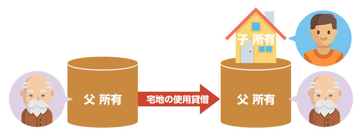 たとえば、父所有の宅地を子が使用貸借により借り受け、子がその上に収益物件を建てた場合は次のようになります。