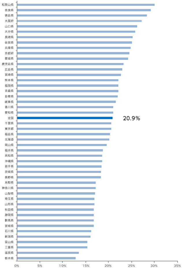 図1を見ると、30%を超える和歌山県をはじめ、16位までが西日本エリアの都道府県となっています。