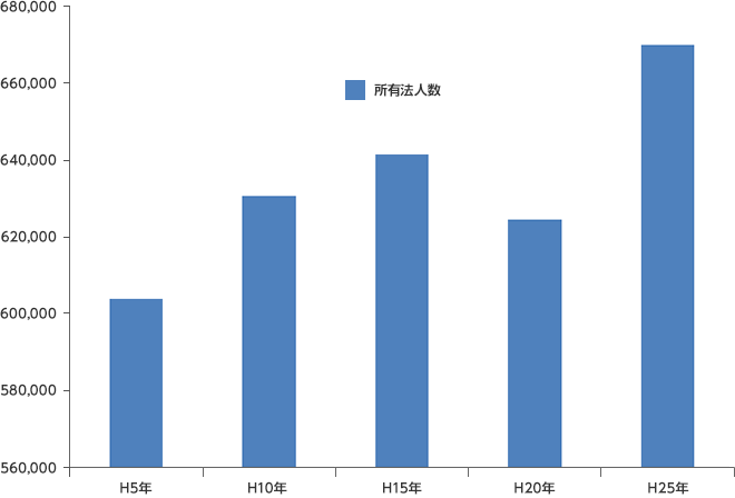 上図は、國(guó)土交通省が平成25年(2013年)に公表した、土地を保有する法人の數(shù)の推移です。