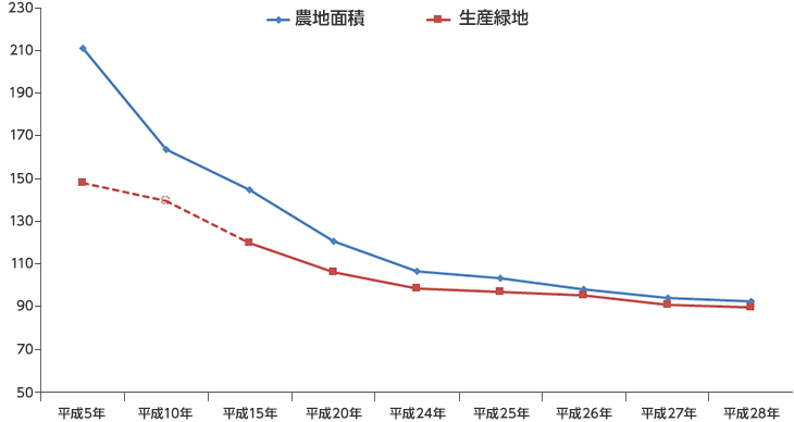 ※生産緑地平成10年データは、當(dāng)年未掲載のため平成11年分を採用