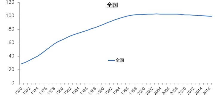 上図は、1971年から2017年までの消費(fèi)者物価指數(shù)の中のコアCPIと民営賃料の推移です。ちなみに、コアCPIは、消費(fèi)者物価指數(shù)の中から、自然(天候等)の影響を受けやすい、生鮮魚介、生鮮野菜、生鮮果物などを除いたものです。