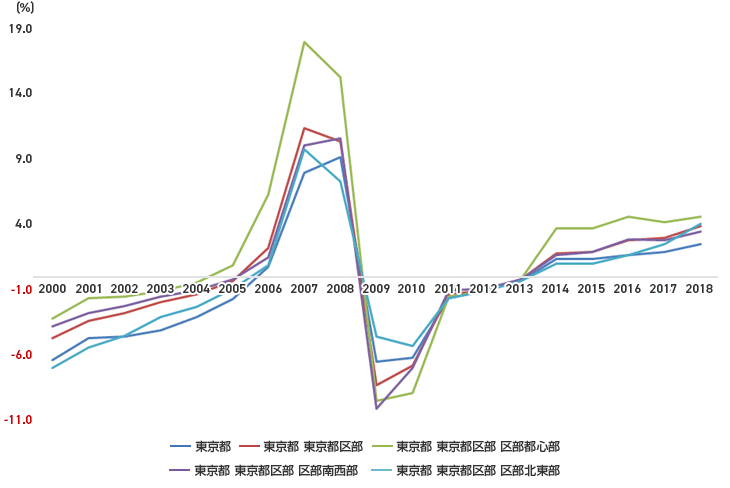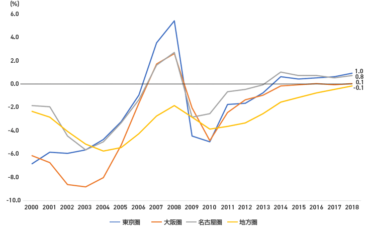 図5:圏域別(住宅地)地価公示前年増減率(2000年~)