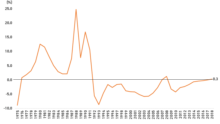 図3は、1975年以降の公示地価(住宅地)の前年増減率のグラフです。