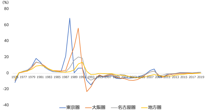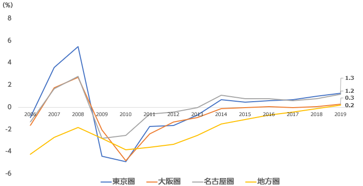 図2:都市圏別 地価公示変動率の推移(住宅地)