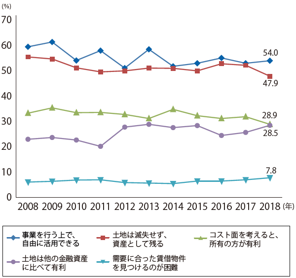 企業(yè)は、土地所有の有用性や土地の購入?売卻について現(xiàn)在どのように考えているのでしょうか。