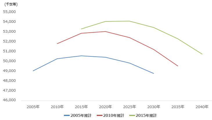 ?日本の將來世帯數予測も減少するポイントが遅くなっている
