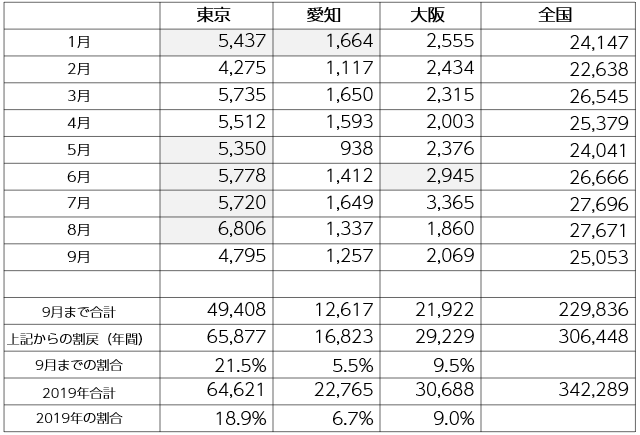 2020年1~9月の貸家著工數(shù)