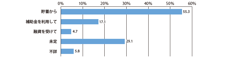 図2のアンケート結(jié)果では、「貯蓄から捻出する」が55%、「融資を受けて」は4.7%、各自治體が上限を設(shè)けて行っている「補(bǔ)助金の利用」は17.1%に留まりました。各自治體は、もう少し積極的に広報を行ったほうがよいのかもしれません。