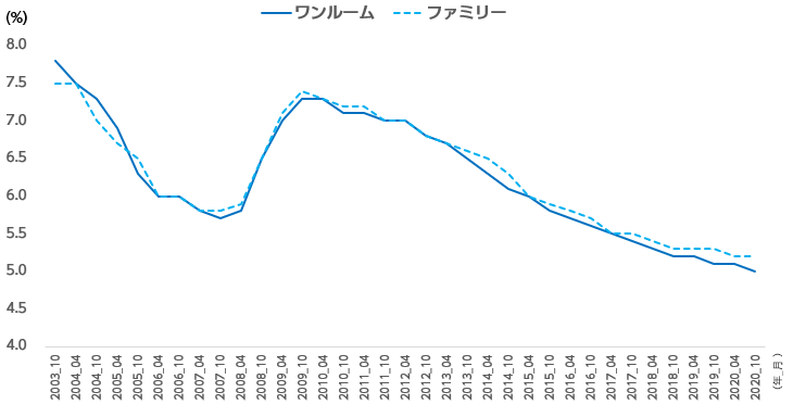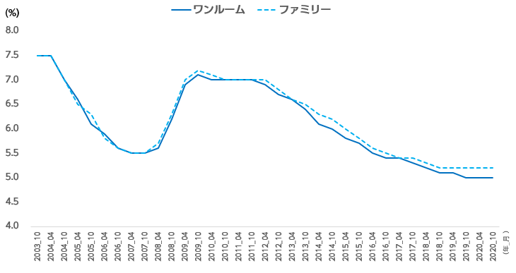 図1:賃貸住宅キャップレートの推移(東京_城南)
