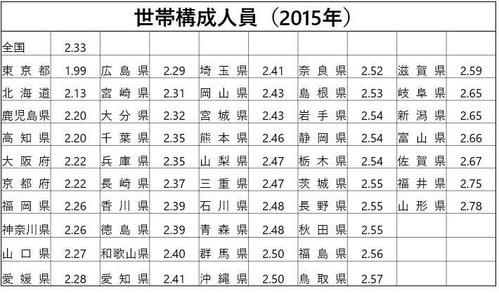 少ないのは都市部だけでない!都道府県別世帯構(gòu)成人員