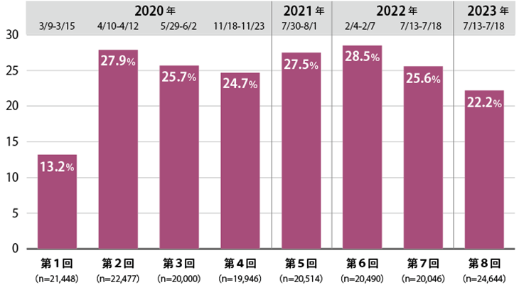 株式會(huì)社パーソル総合研究所「第8回?テレワークに関する調(diào)査/就業(yè)時(shí)マスク調(diào)査」より作成
