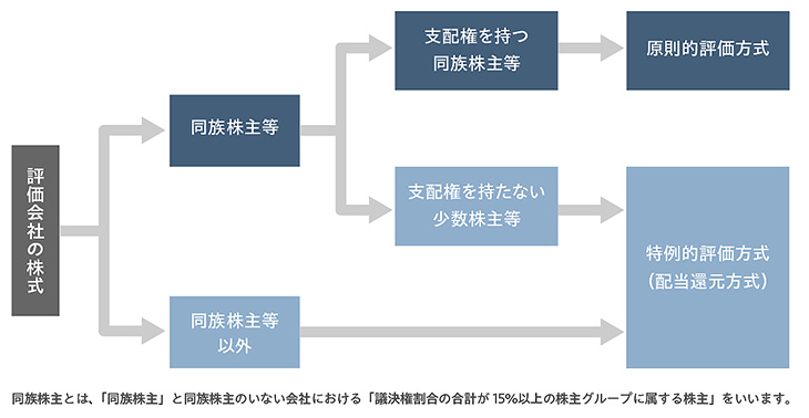 國稅庁の「取引相場のない株式の評価」によれば、「取引相場のない株式は、相続や贈與などで株式を取得した株主が、その株式を発行した會社の経営支配力を持っている同族株主等か、それ以外の株主かの區分により、それぞれ原則的評価方式または特例的な評価方式である配當還元方式により評価します」とあります。同族株主か否かで會社経営への影響度(経営支配力)が変わります。一般的に同族の場合は経営への影響力が大きくなりますので、同族以外の人とは株式を保有する目的が変わってくると考えられるからです。
