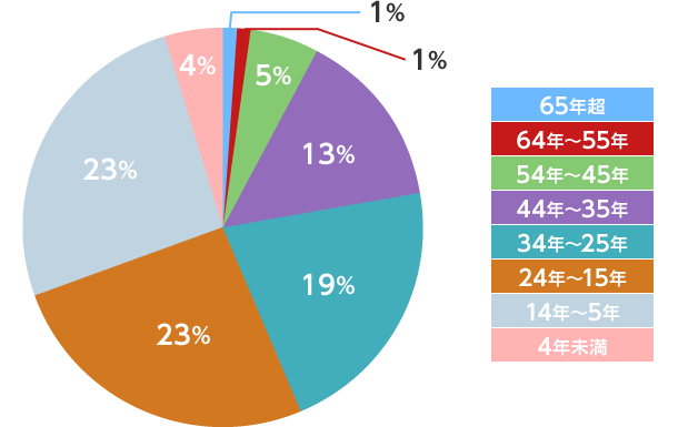 上の図は、賃貸住宅の築年數を示したものですが、約4割は築25年以上、2割は築35年以上となっており、建て替え時期に差し掛かっている物件が多數あることがうかがえます。