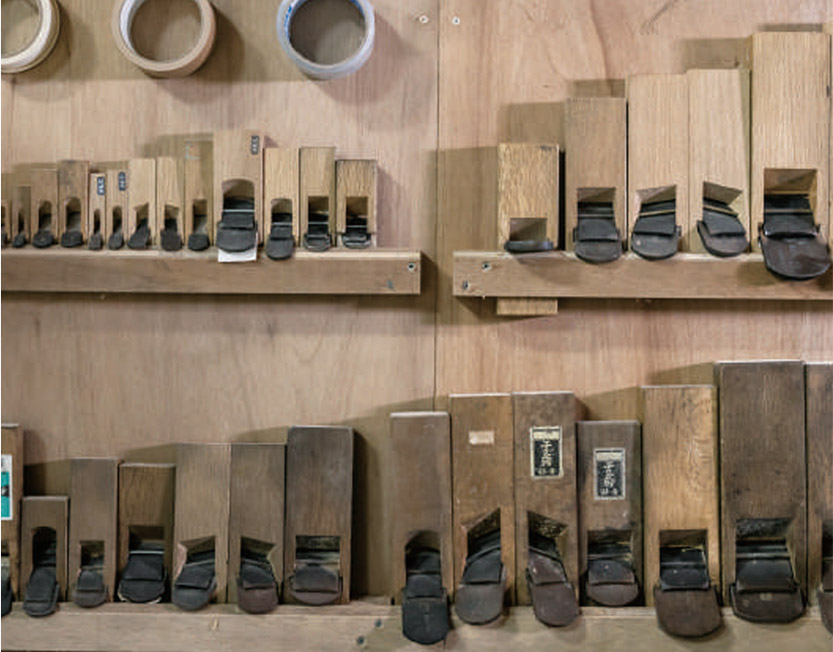 大小さまざまのかんな。曲面を削るため、小さいかんなの方をよく使うそうです